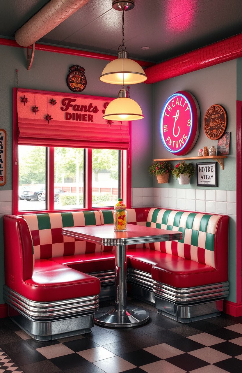 Decorate with jukeboxes or vintage memorabilia. This style is both fun and nostalgic.