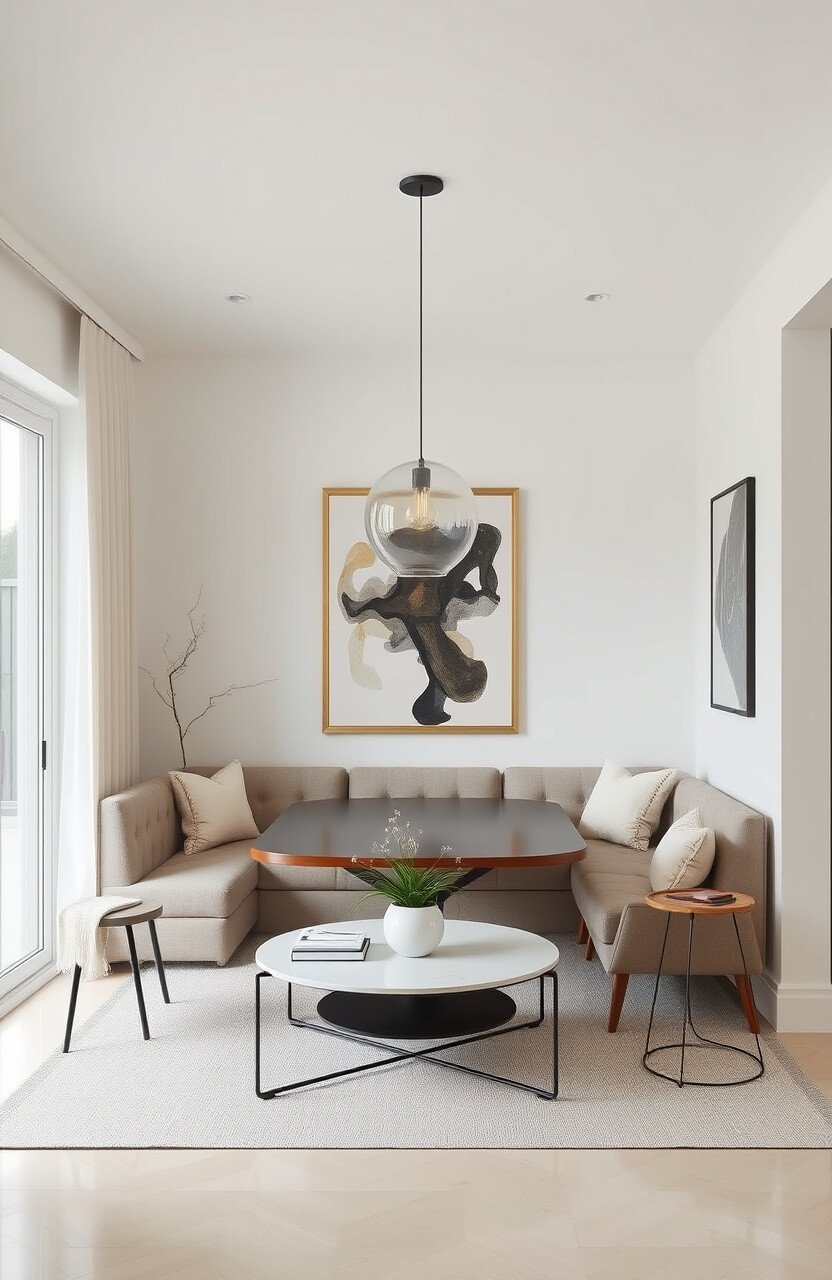 Choose a sleek table with comfortable chairs or a bench. This idea is perfect for small spaces that need an airy feel.