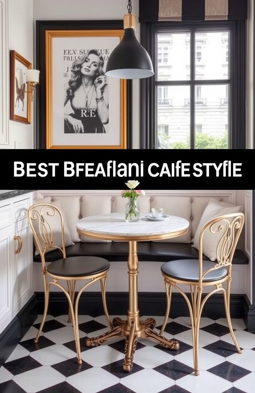 Bring the elegance of a Parisian cafe to your home. A marble-topped table and bistro chairs create a chic setup.