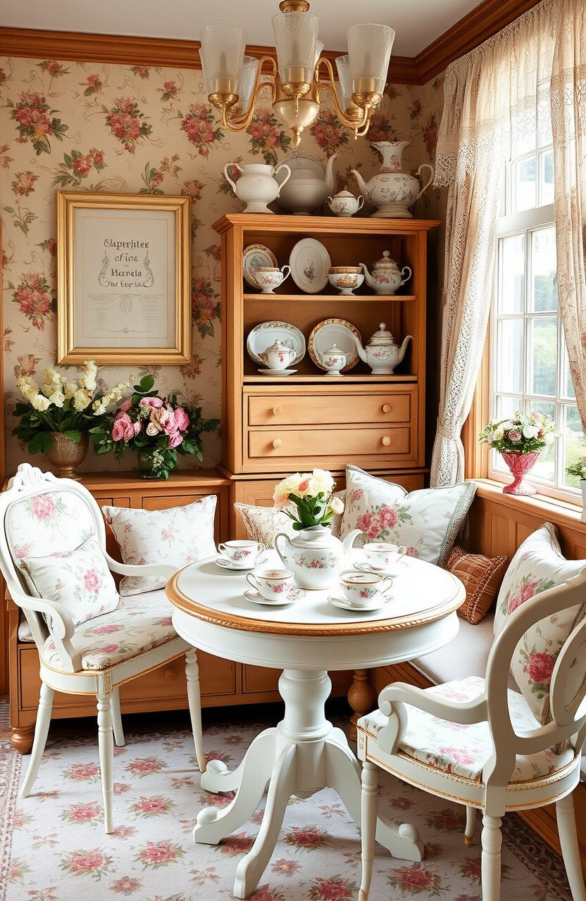 Decorate with teapots or vintage tea sets. This style is both charming and inviting.