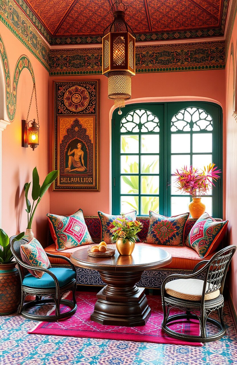 Decorate with mosaic tiles or colorful textiles. This style is perfect for those who love color and texture.
