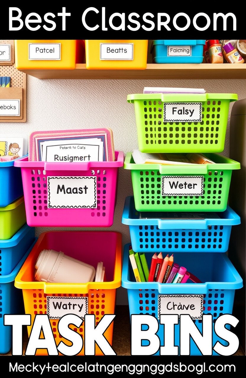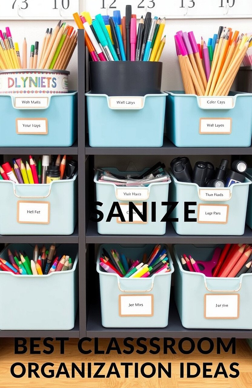 Trendy bins come in various styles, adding flair to the room. Personalize with labels and themes that inspire students.
