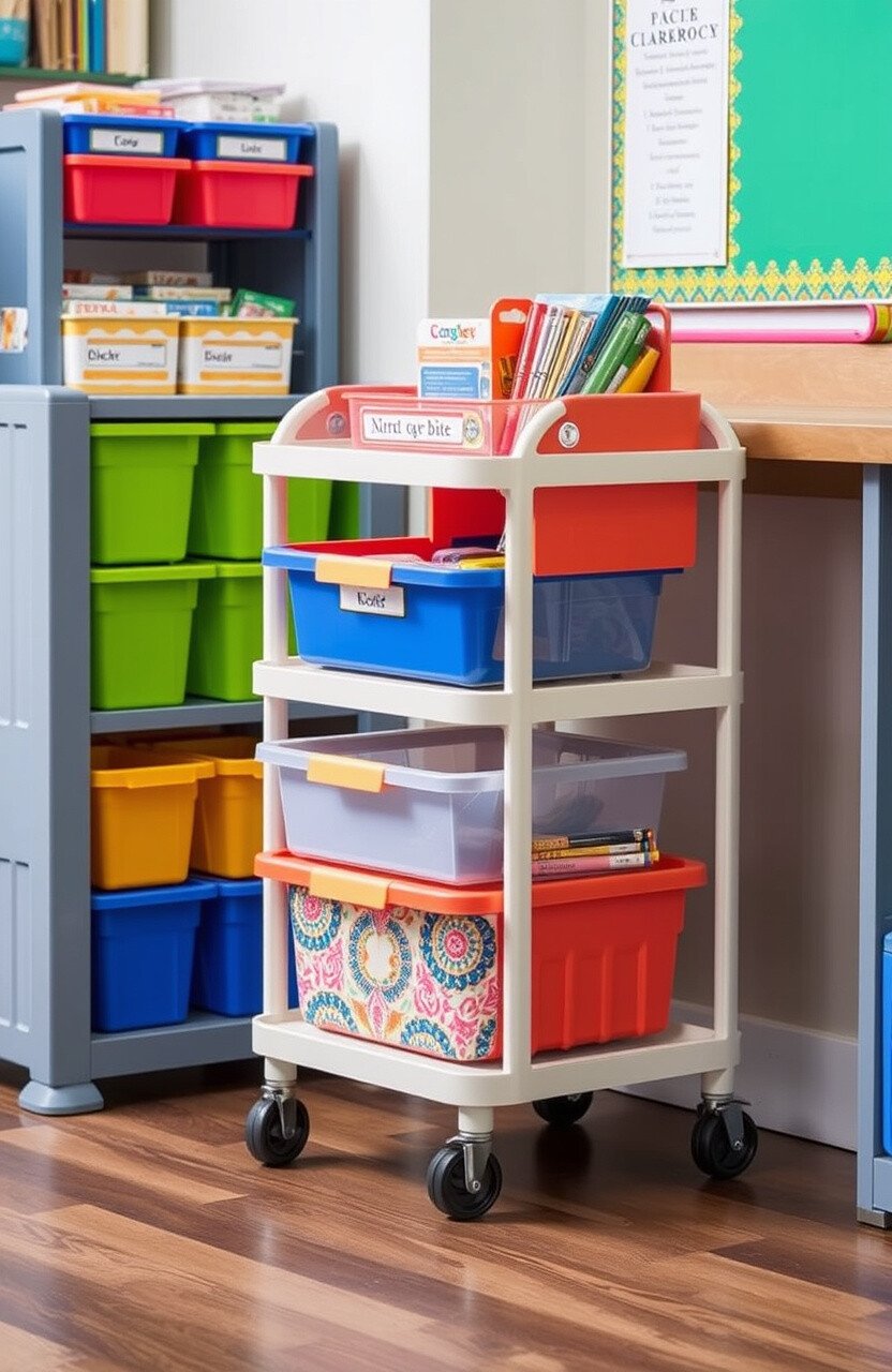 Mobile storage carts are a lifesaver for busy classrooms. They provide flexible storage options that can move anywhere.