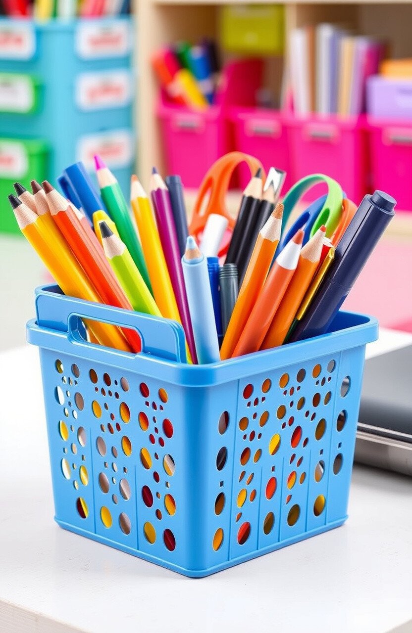 Trendy caddies come in various colors and designs, adding flair to the room. Personalize with student names for ownership.