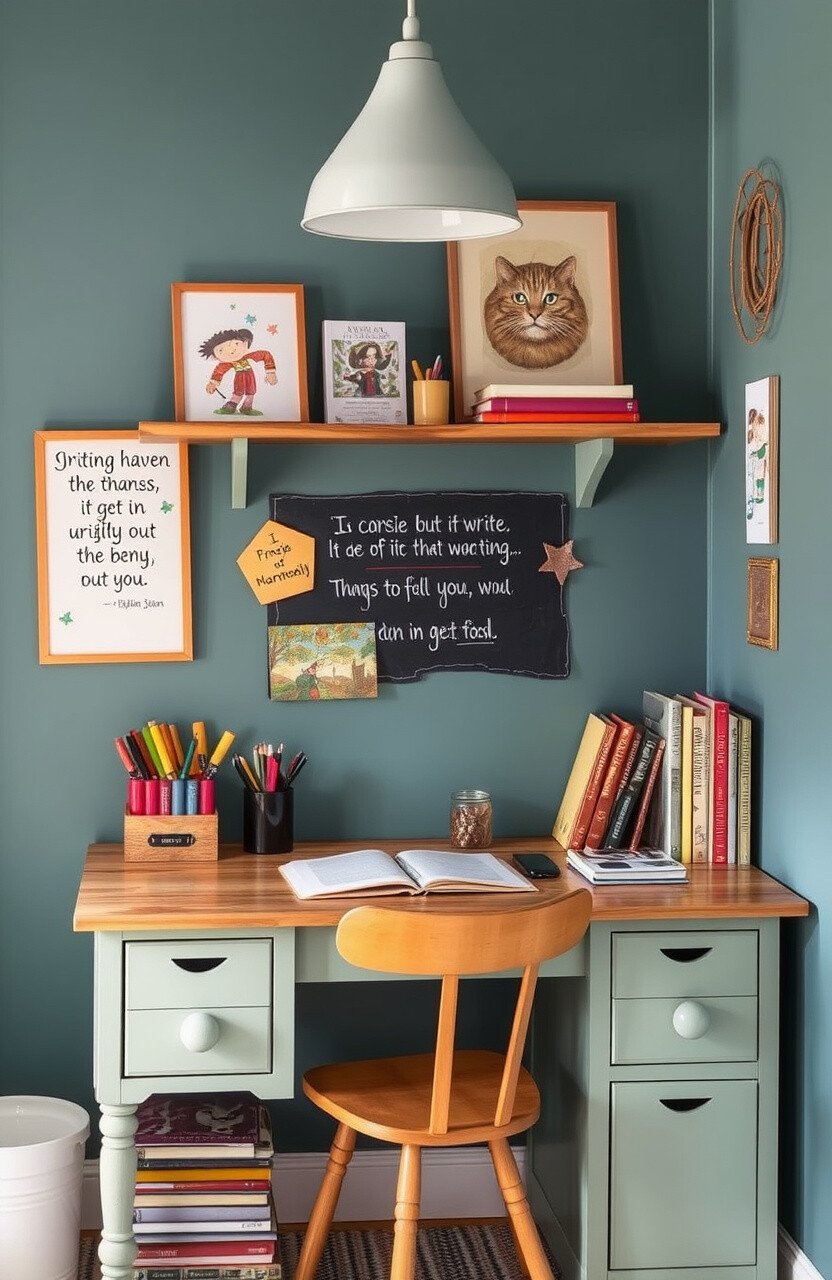 Use a small desk with notebooks, pens, and inspiring quotes. Encourage kids to write stories, poems, or journals.