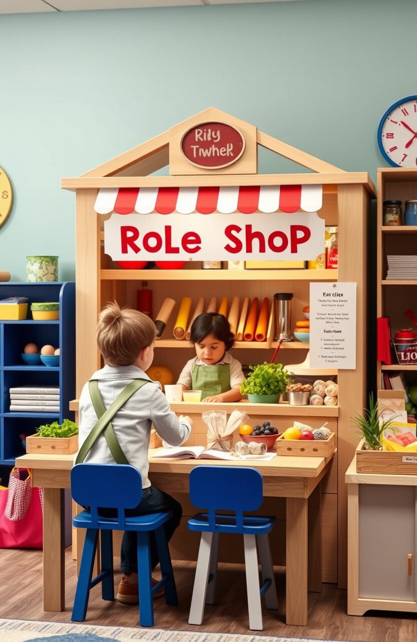 Use recycled materials and homemade props for cost-effective play. Rotate shop themes for continuous excitement.