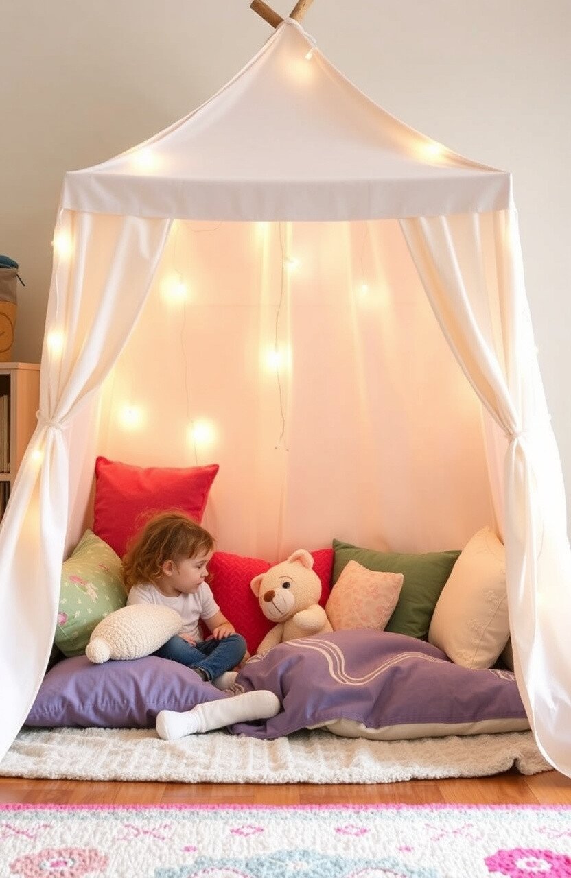 Decorate it with soothing colors and fairy lights for a unique touch. Provide soft toys and calming activities.