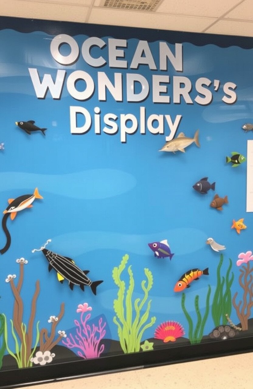 An ocean wonders display showcases marine life with visuals and facts. It’s a dive into oceanic enchantment.