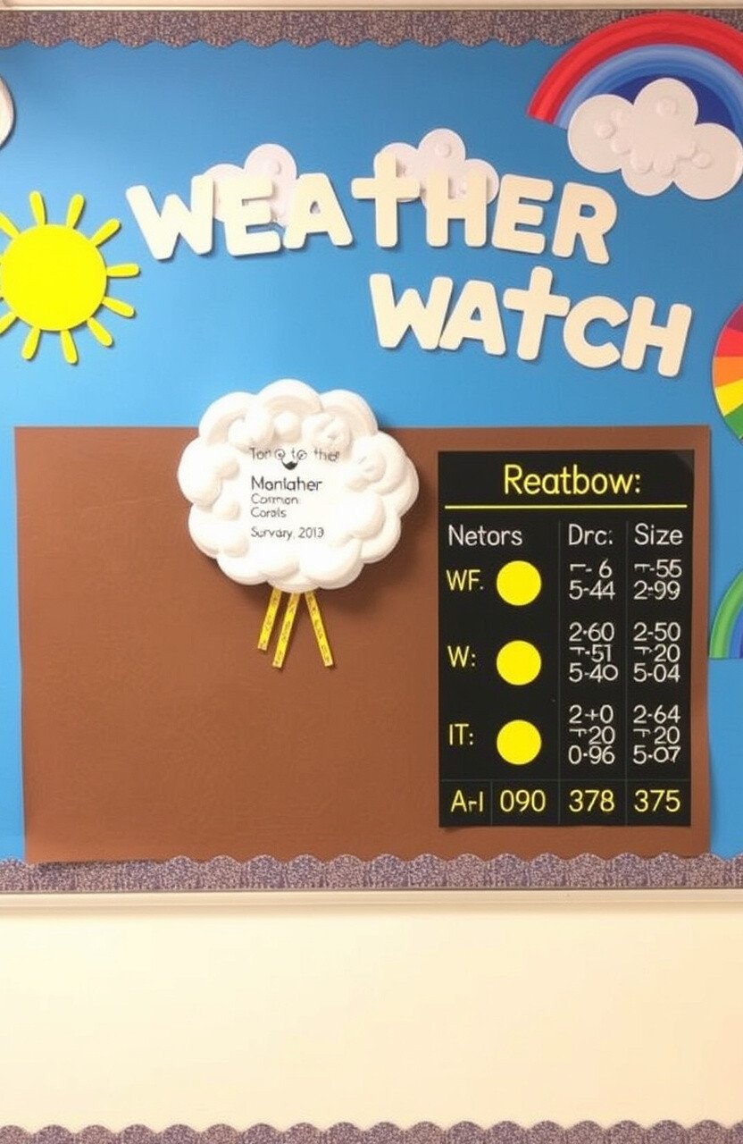 Create a weather-themed board with clouds, suns, and rainbows. Add a daily weather report for students to update.