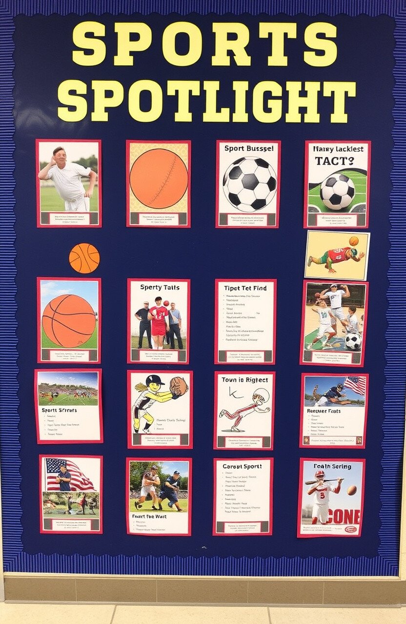 Highlight different sports with pictures, facts, and student achievements. Use team colors and mascots for a spirited look.