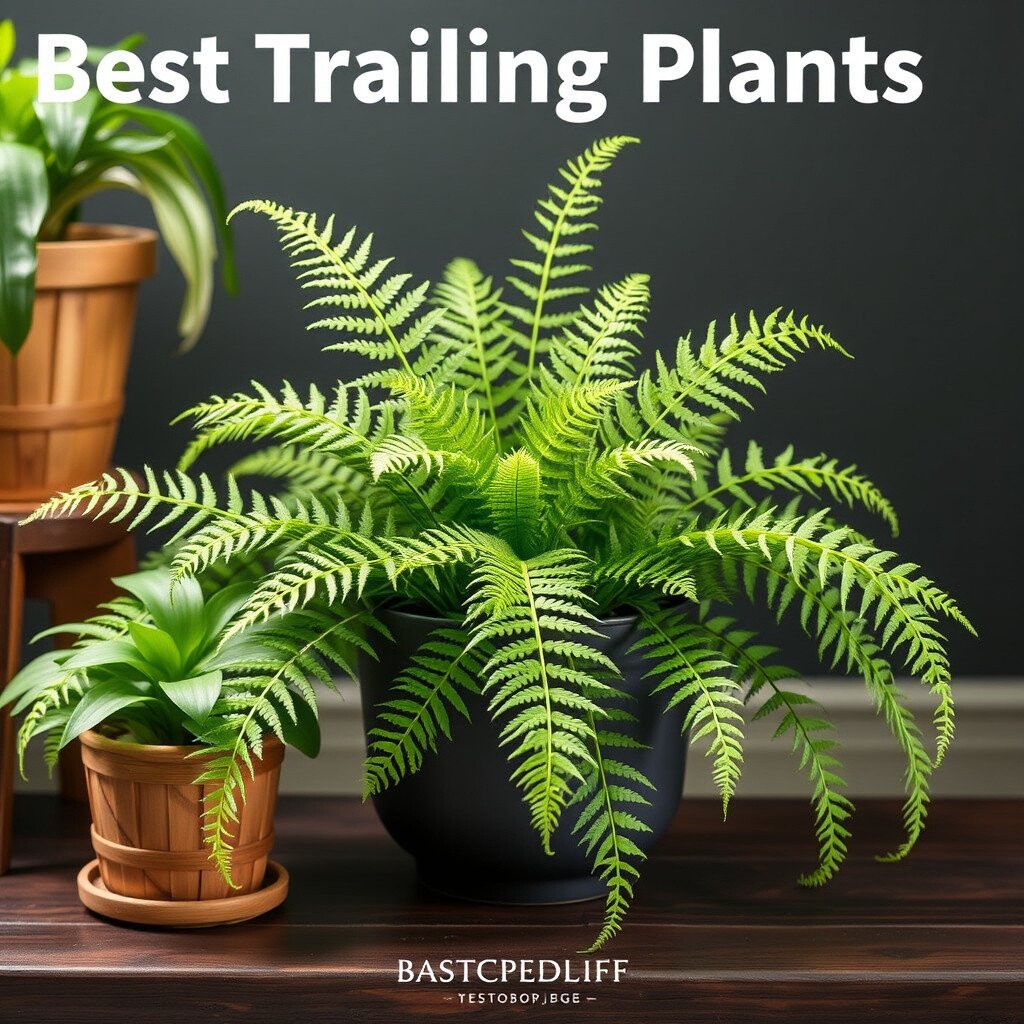 The Boston Fern is a lush, green plant that adds texture with its feathery fronds.