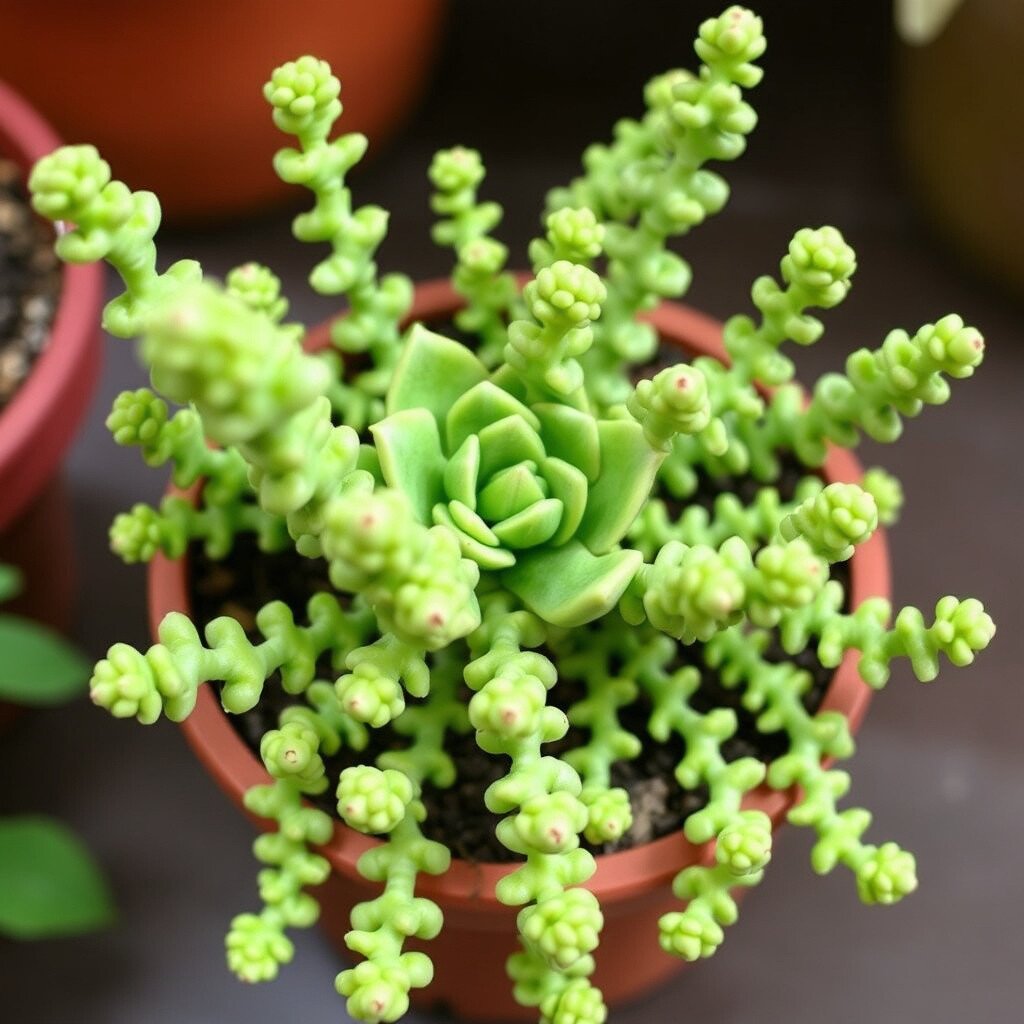 This plant is perfect for hanging baskets where its tails can drape beautifully. It’s a fun and quirky option.