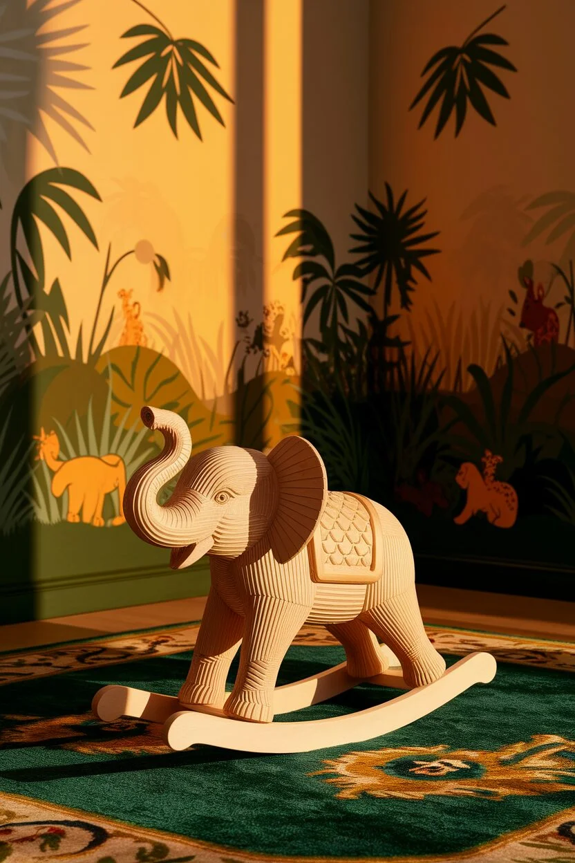 Unique items like a canopy bed with hanging vines are delightful. Use plush animals to add softness and comfort.
