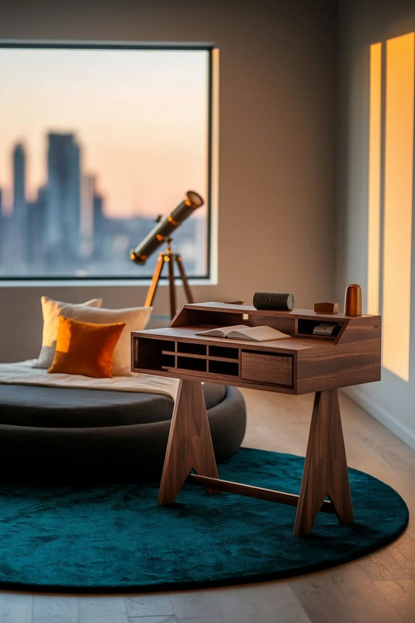 Unique features like a robot bed add whimsy. Use circuit board patterns for a techy touch.