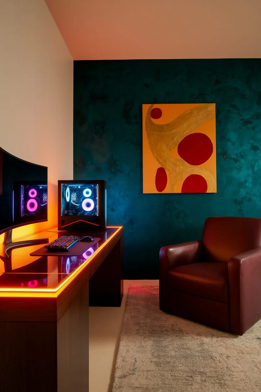 Unique features like a gaming chair and headset holder add flair. Use LED lights for a cool, modern touch.