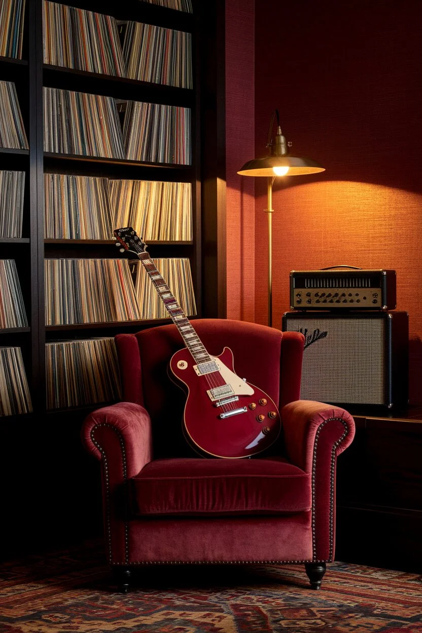 Unique features like a guitar-shaped bed make it special. Use records and band posters for a rock-and-roll vibe.