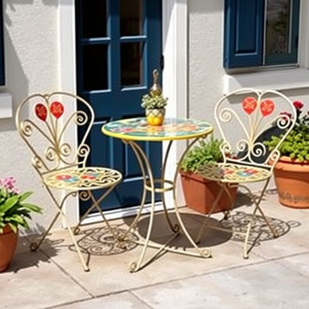 Add a touch of whimsy to your garden with a bistro set in playful shapes or colors. Think swirls, florals, and unexpected patterns.