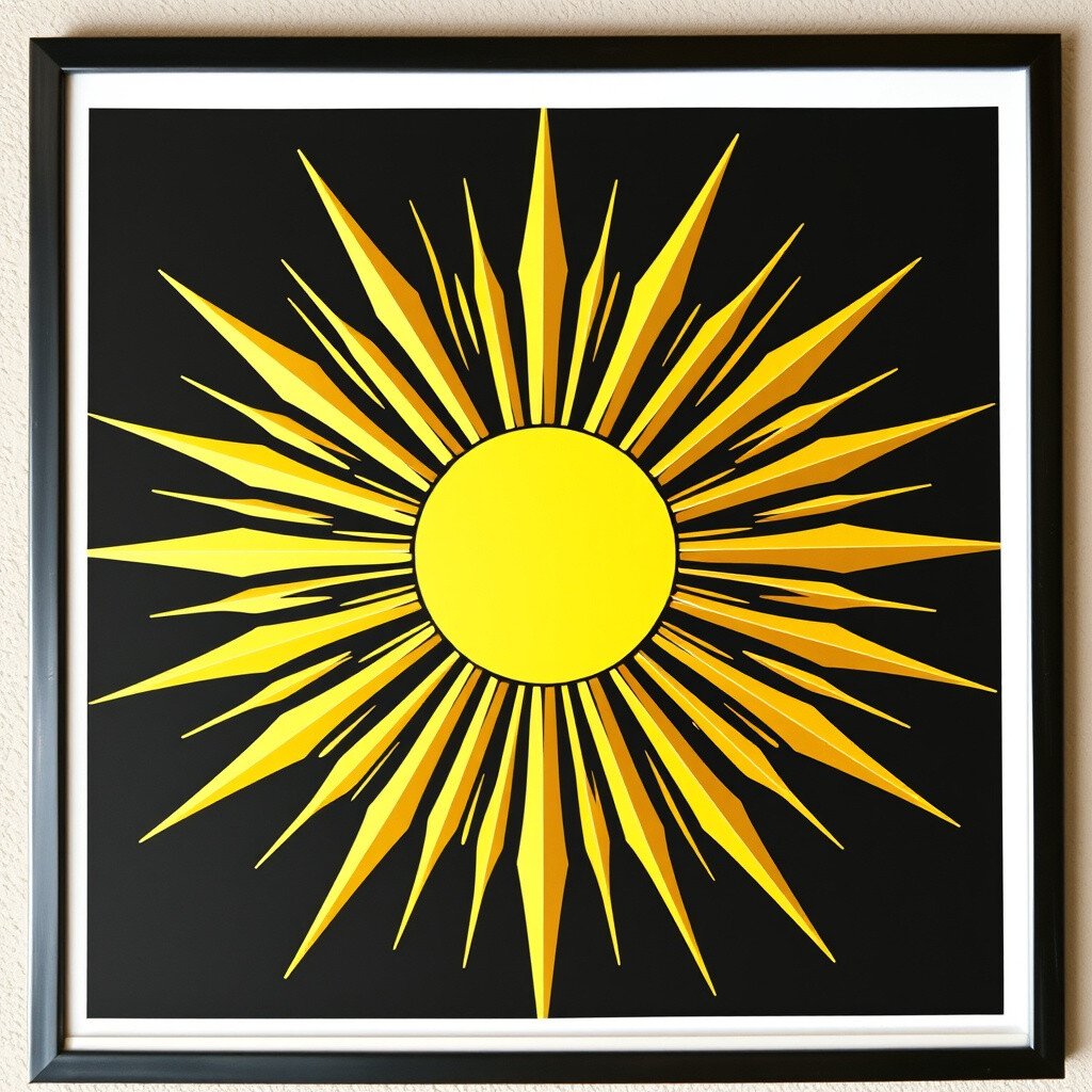 Envision a pop art-inspired sunburst, with bold, exaggerated lines in gold on black.