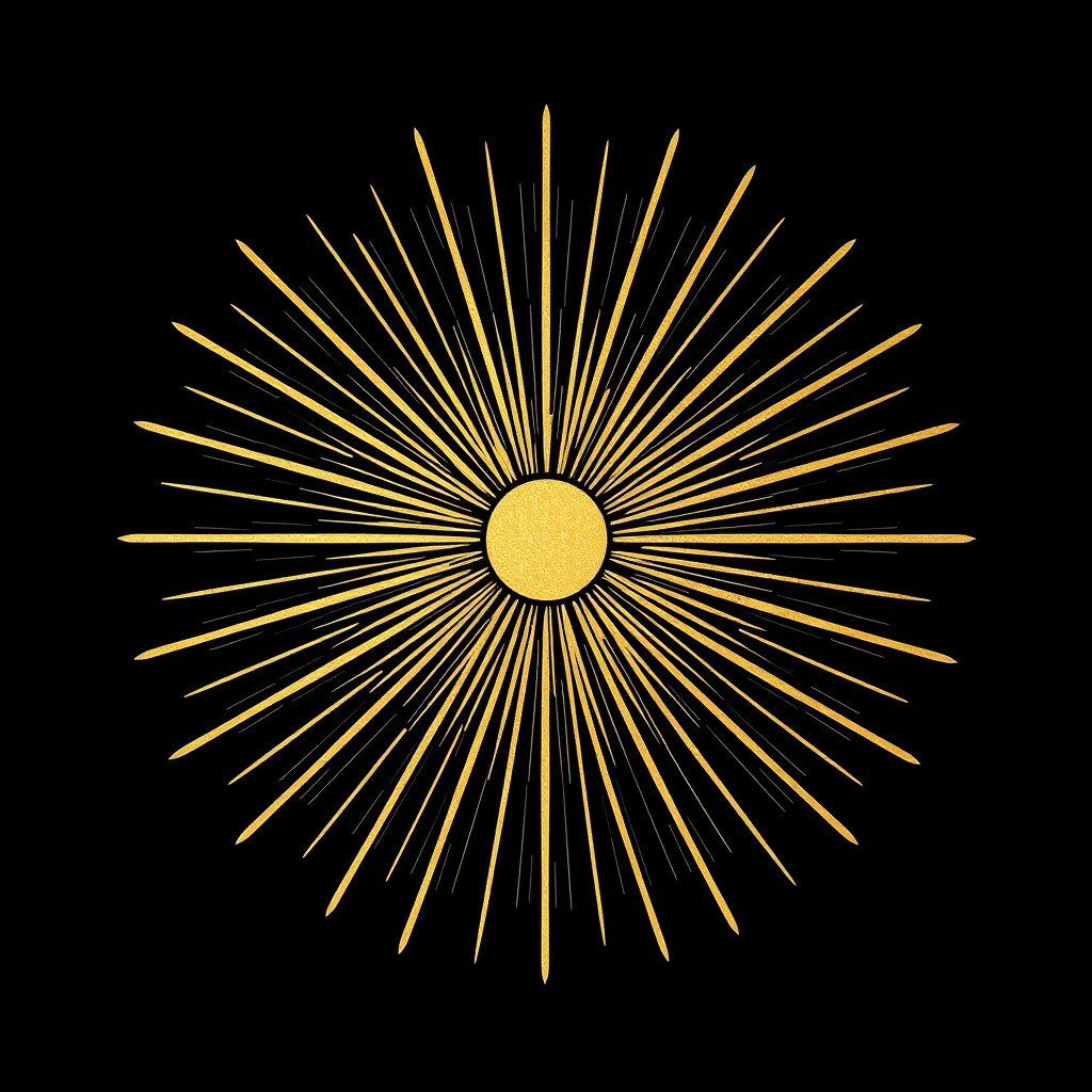 Imagine a sunburst with a modern, futuristic twist, using metallic gold for a high-tech look.