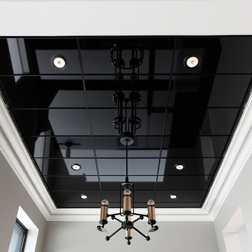 Glossy black panels shine bright and catch the eye. They’re like the fancy shoes of ceiling decor!