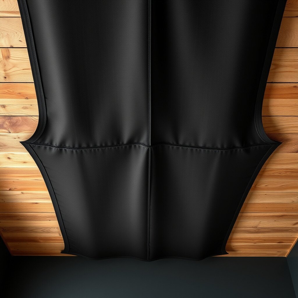 Imagine a ceiling draped in soft, black fabric. It’s like a cozy blanket overhead.