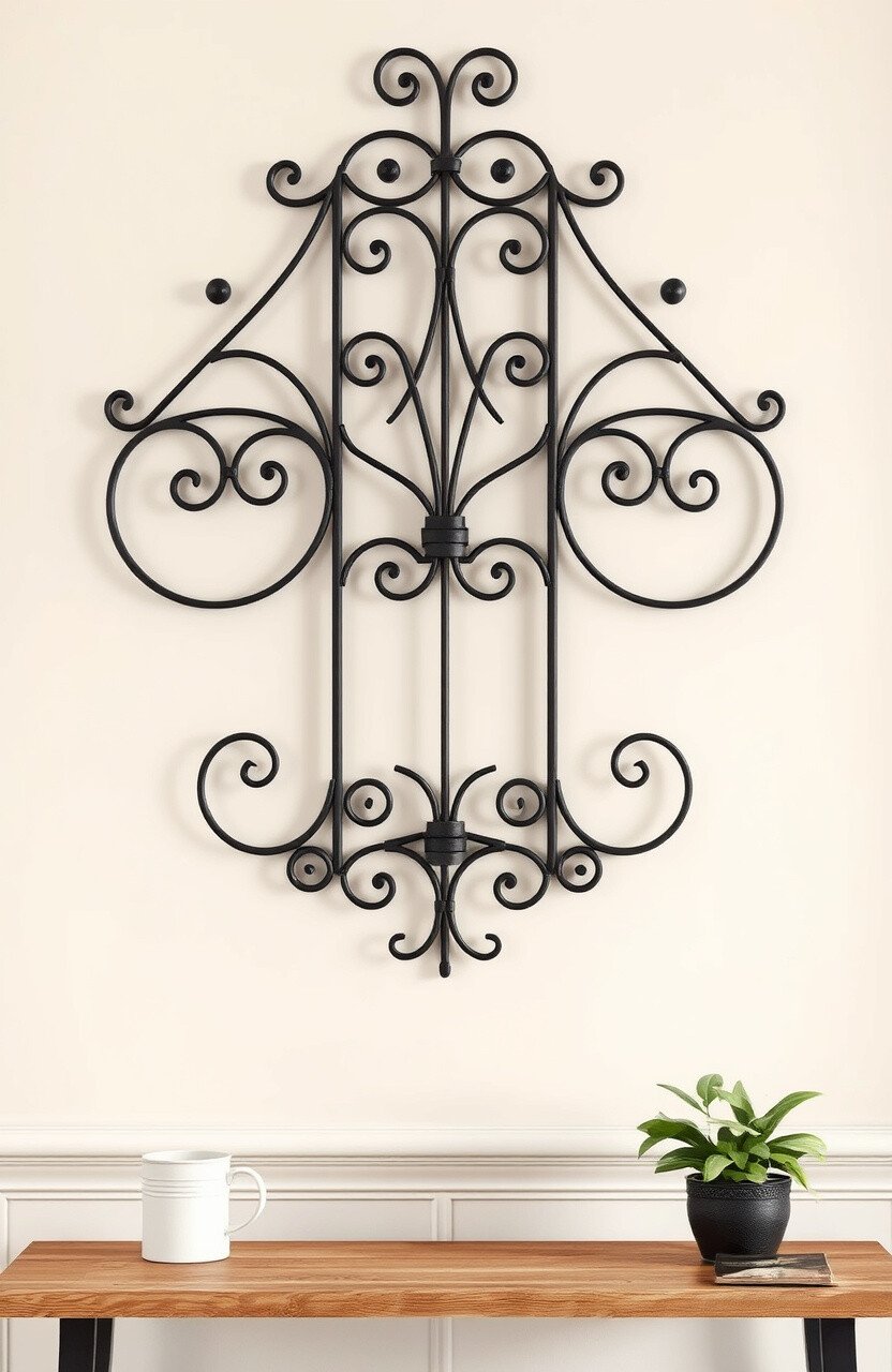 Black wrought iron wall art adds a touch of elegance and sophistication to any room. It’s sturdy and timeless, often featuring intricate designs.