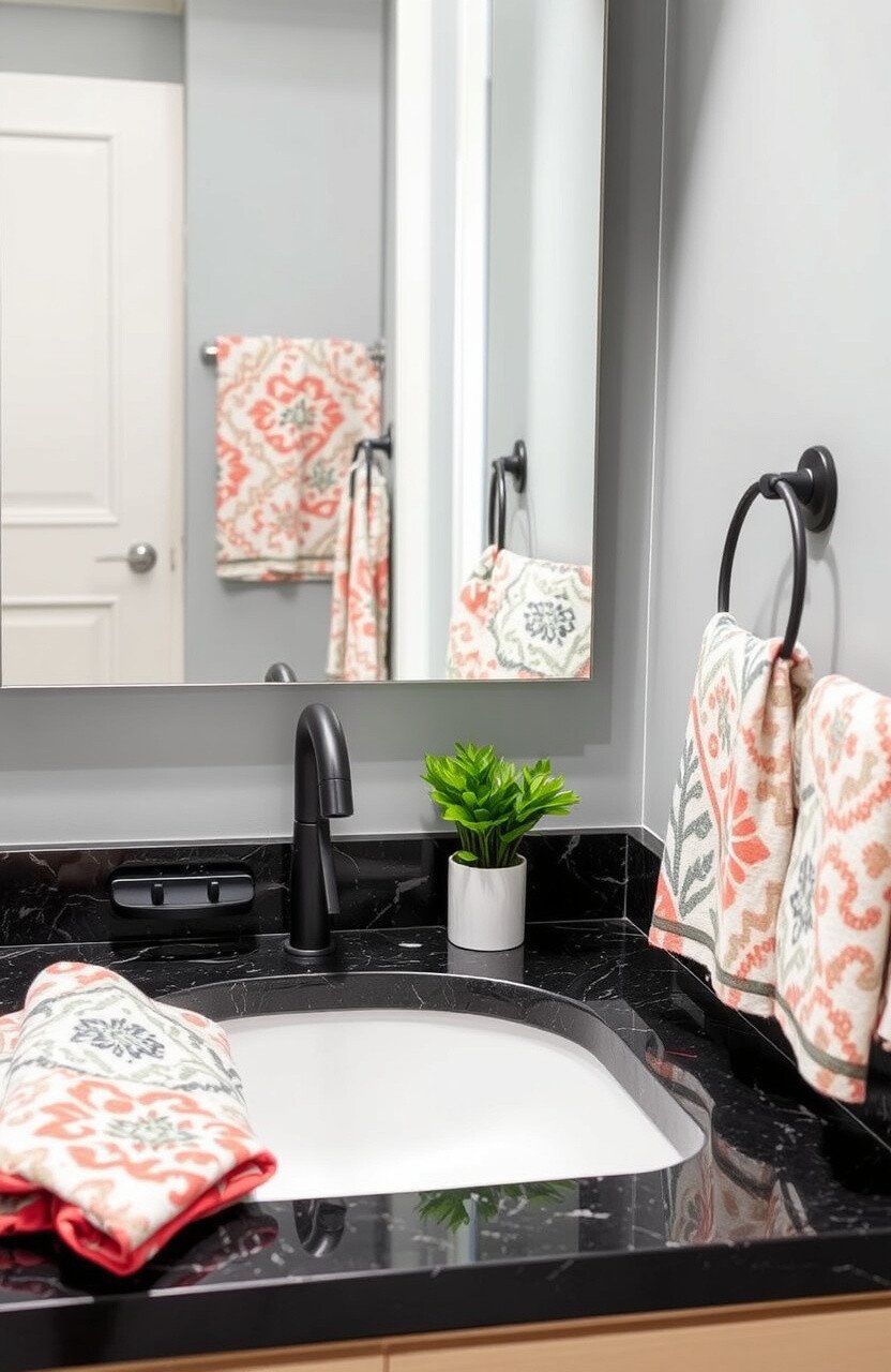 Patterned towels add a touch of fun. They bring color and texture to your sink area.