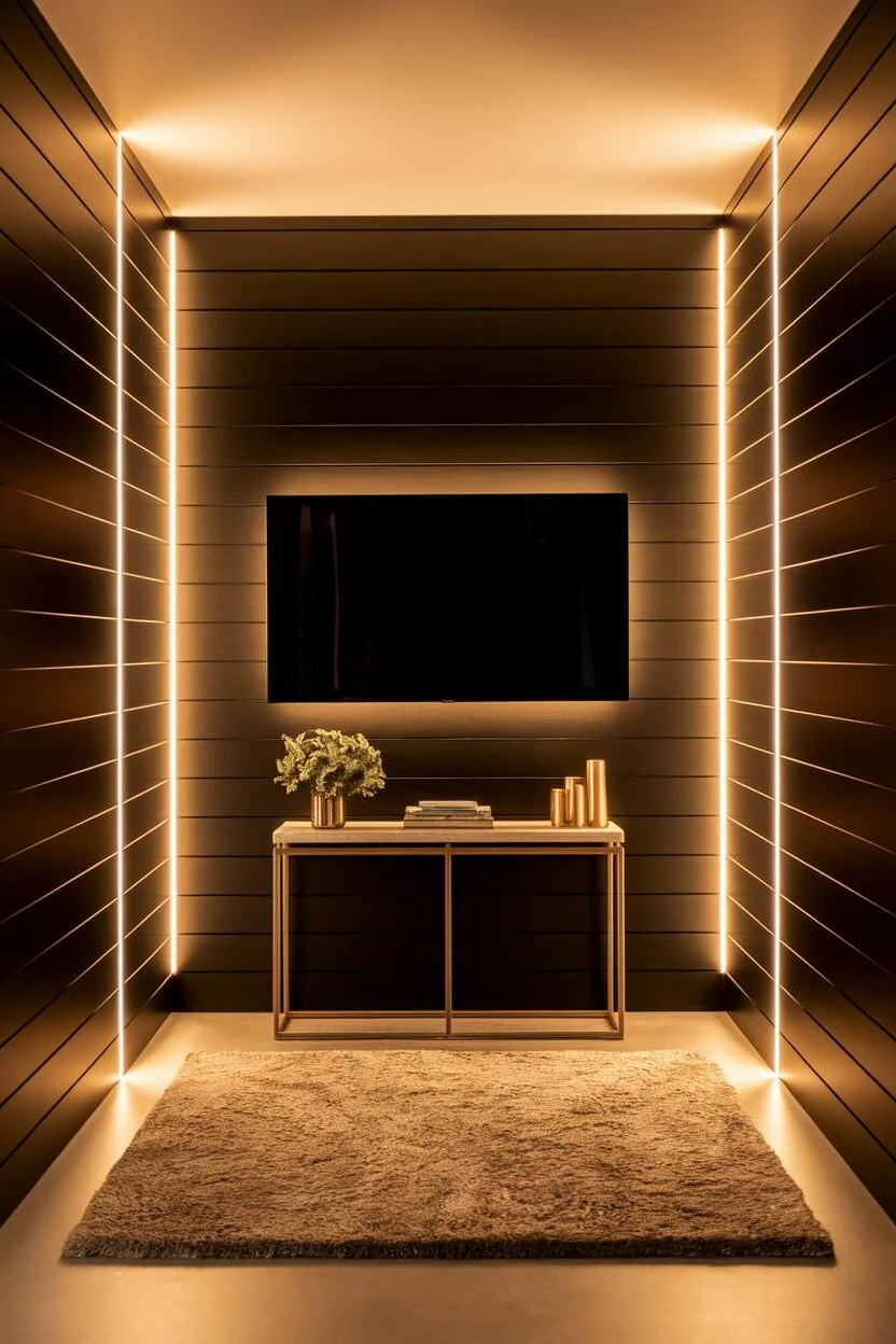 For those who love a touch of glamour, try a black shiplap wall paired with gold accents. A stylish TV frame or decorative gold fixtures can make your space feel luxurious.