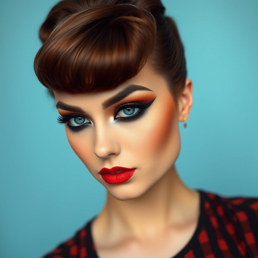 This look is all about old-school glam with a modern twist. The brown shadow adds depth to the eyes, making them pop against the vibrant blue. It’s like stepping onto a movie set from the 1950s.