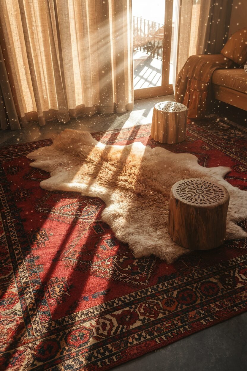 Start by layering rugs of different sizes and patterns to create a sense of depth and warmth. Mixing textures like wool and jute adds an inviting feel.