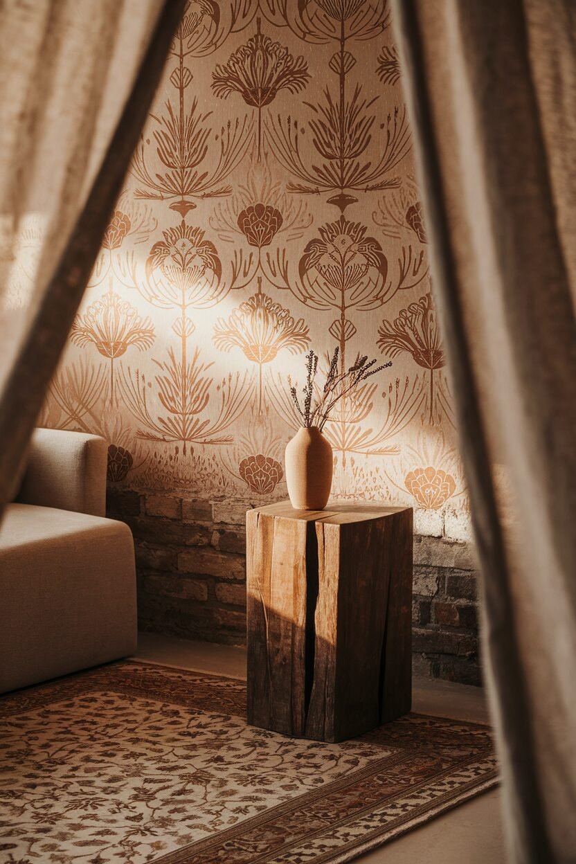 Combine with solid-colored furniture to let the wallpaper shine. Balance is key to ensuring the room doesn’t feel overwhelming.