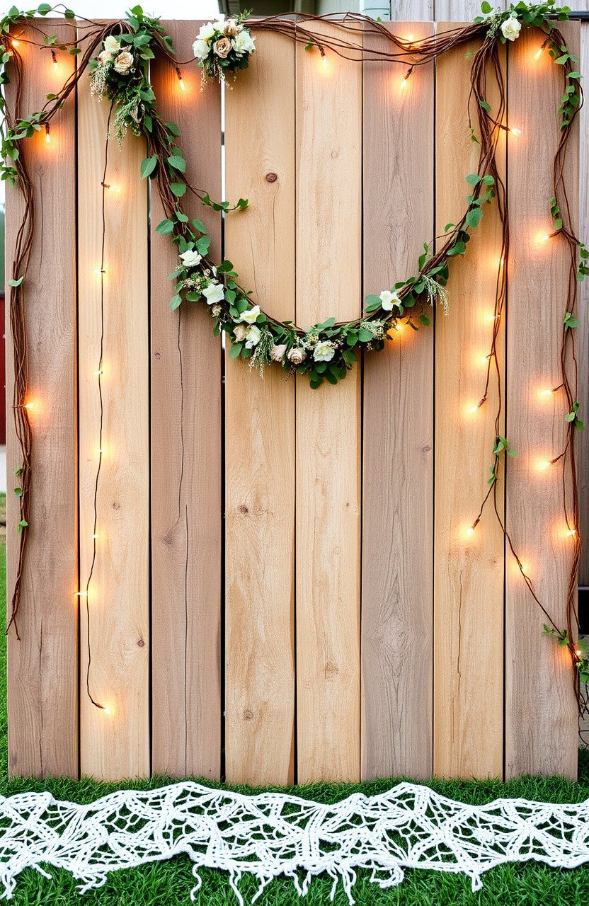 For a more grounded boho vibe, consider using rustic wooden panels. These can be decorated with vines, fairy lights, or even dried flowers to add a rustic charm.