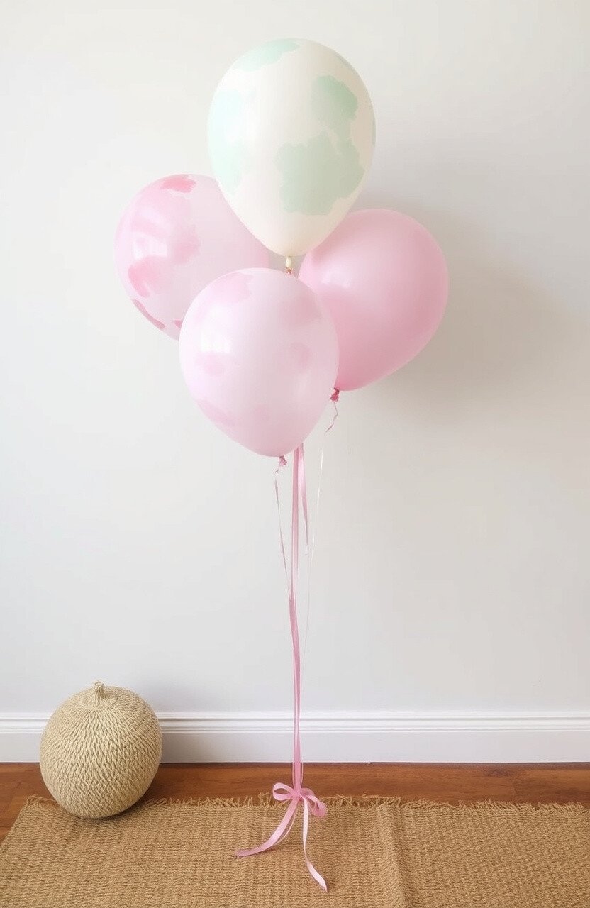 Balloons filled with feathers offer a whimsical touch. They look like little clouds floating in the air, perfect for a baby shower.