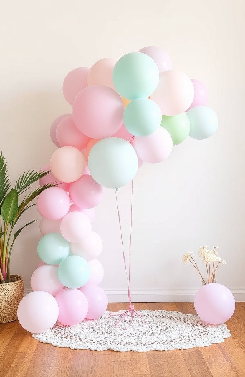 Create a boho rainbow effect with balloons in muted pastel shades. This subtle take on the rainbow theme is both trendy and beautiful.