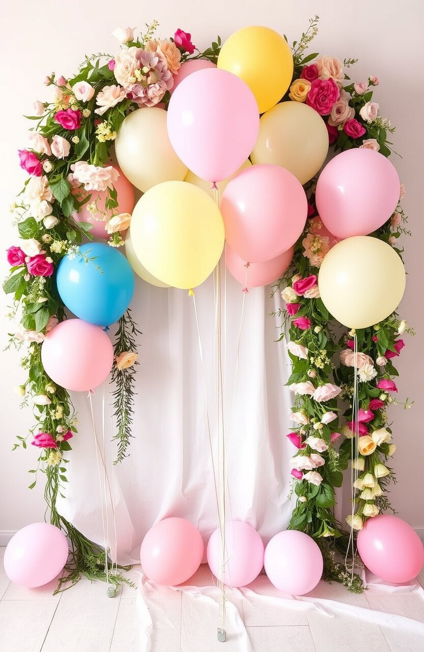 Wrap your balloons in lush floral garlands for a natural, enchanting look. The combination of fresh blooms with floating balloons is simply irresistible, bringing a garden-like atmosphere indoors.