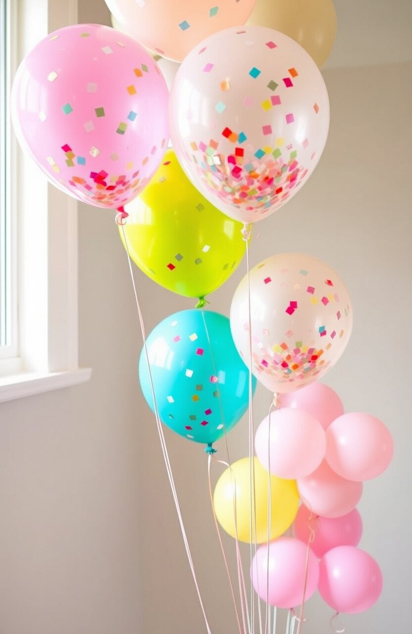 Confetti-filled balloons add a burst of color and excitement. As they float above, they create a sense of joy and playfulness.
