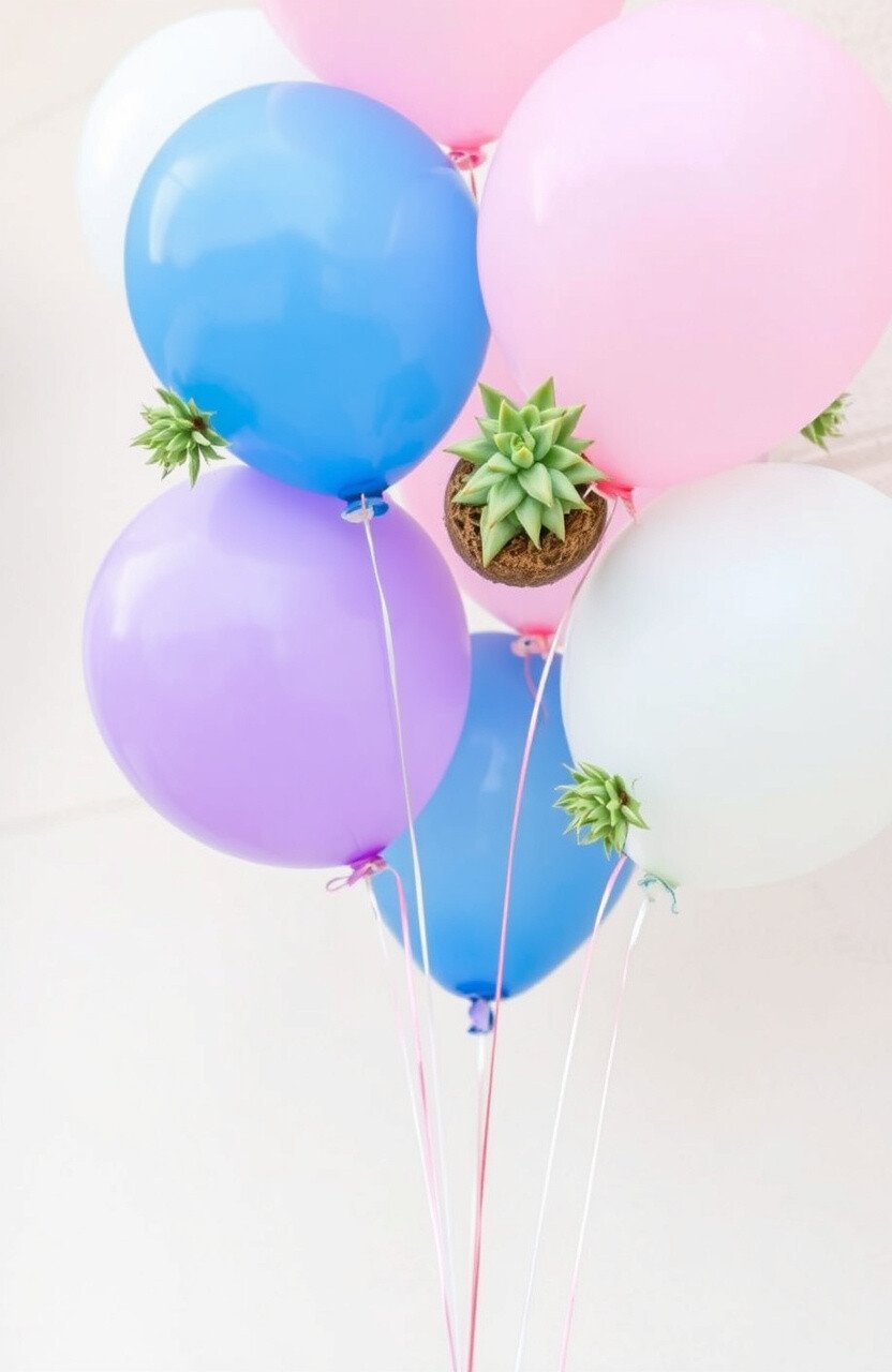 Attach small succulents to your balloons for a trendy, eco-friendly decor option. These little plants add a fresh, natural vibe.