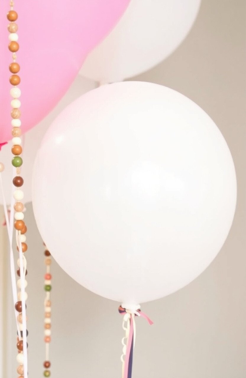 String beads around your balloons for a touch of bohemian elegance. The beads catch the light and add a bit of sparkle to your decor.