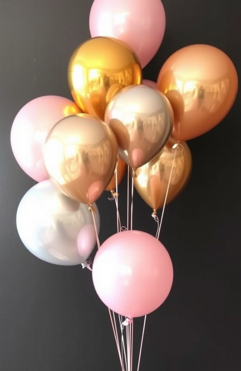 Combine gold, silver, and rose gold for a luxurious feel. They’re a bit more expensive than standard balloons, but their impact is undeniable.