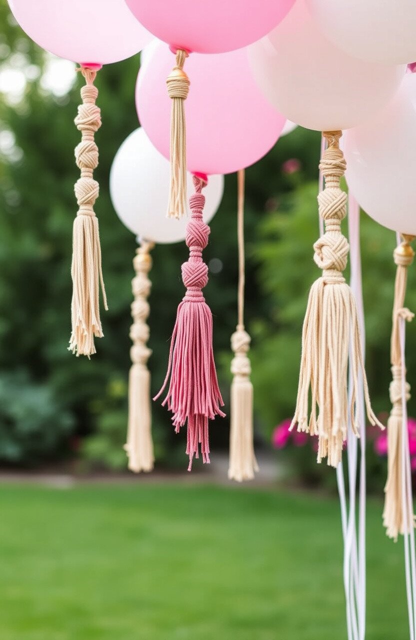 Macramé tassels hanging from balloons create a beautiful, bohemian look. These intricate knots add texture and elegance, transforming ordinary balloons into statement pieces. The best part? They’re handmade, which means each one is unique!