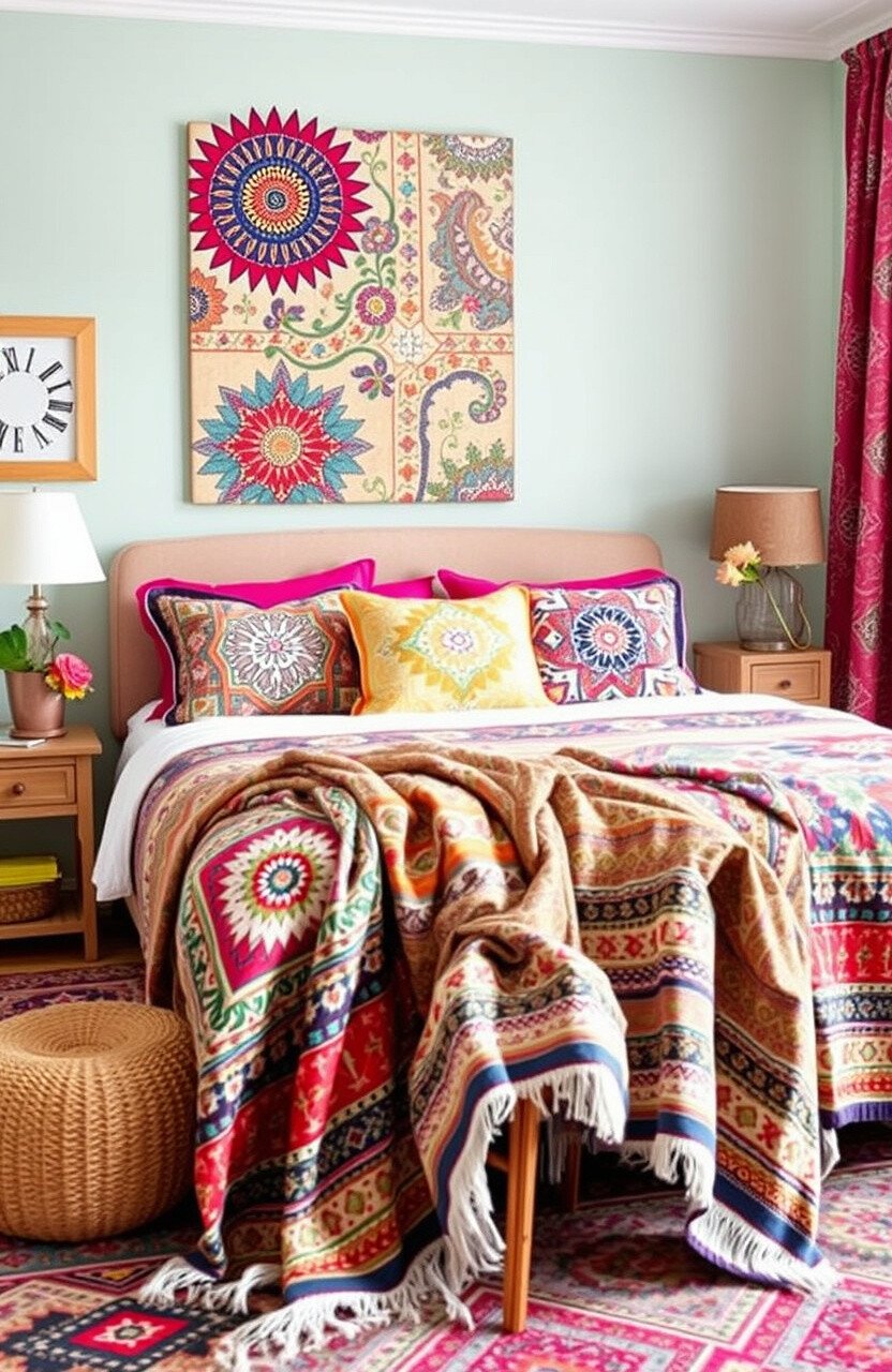 Choose vibrant colors and intricate patterns that make you happy. Layer it over your bed or drape it on a chair for a pop of color.