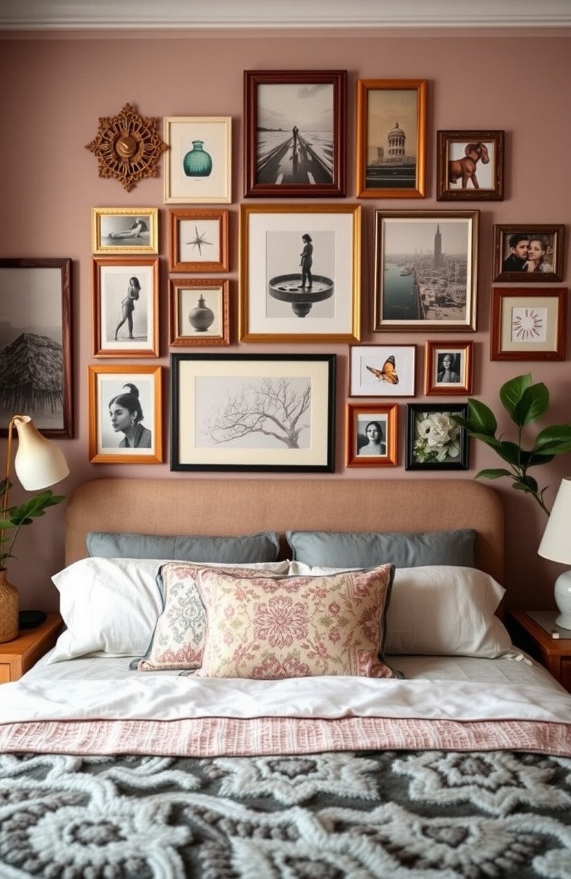 Mix and match frames, artwork, and personal photos for a unique display. Include a variety of sizes and styles to keep it interesting.