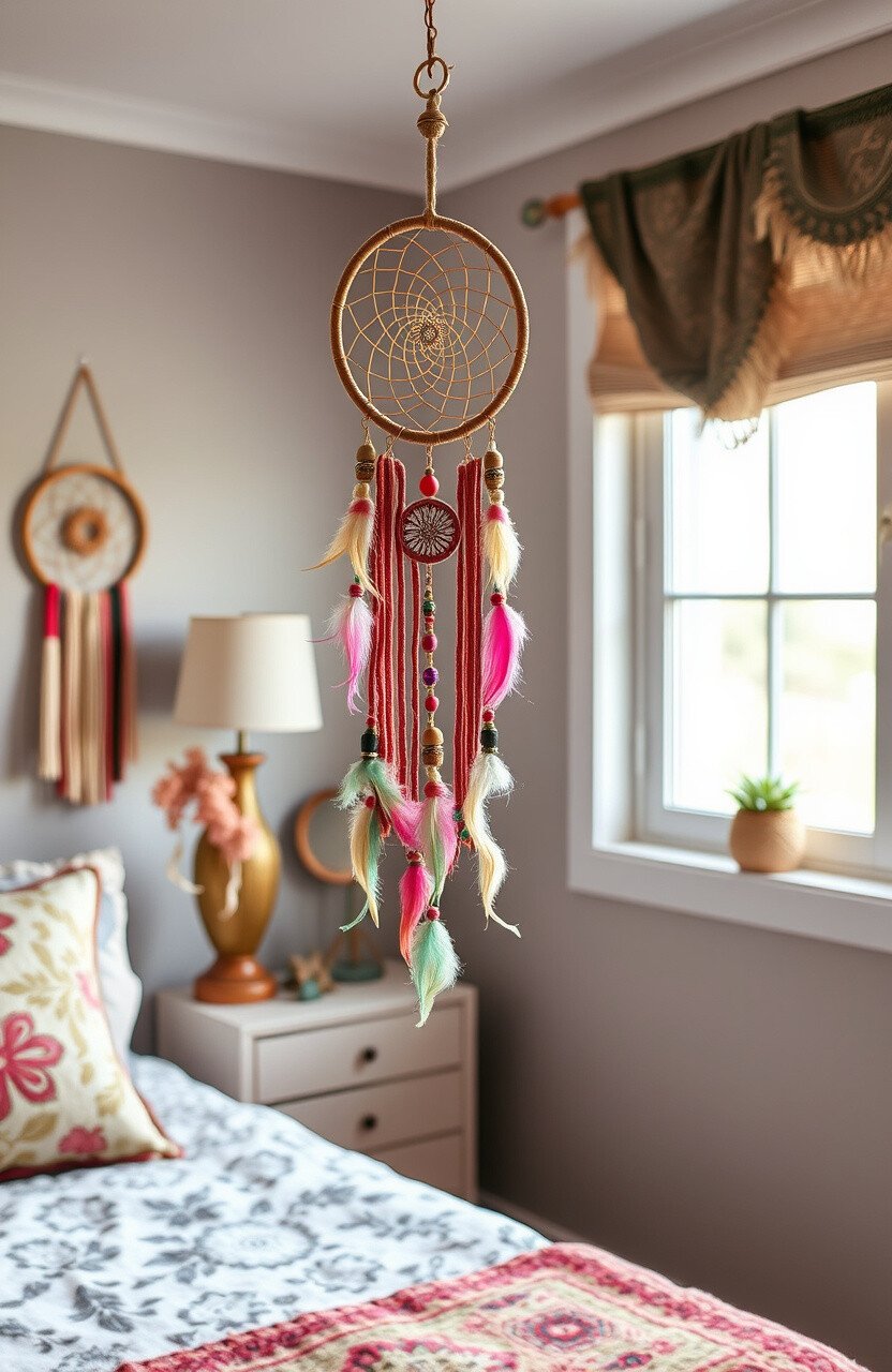 Dream catchers are a staple in Boho decor, known for their symbolic protection and beautiful designs. They add an ethereal feel to any bedroom.