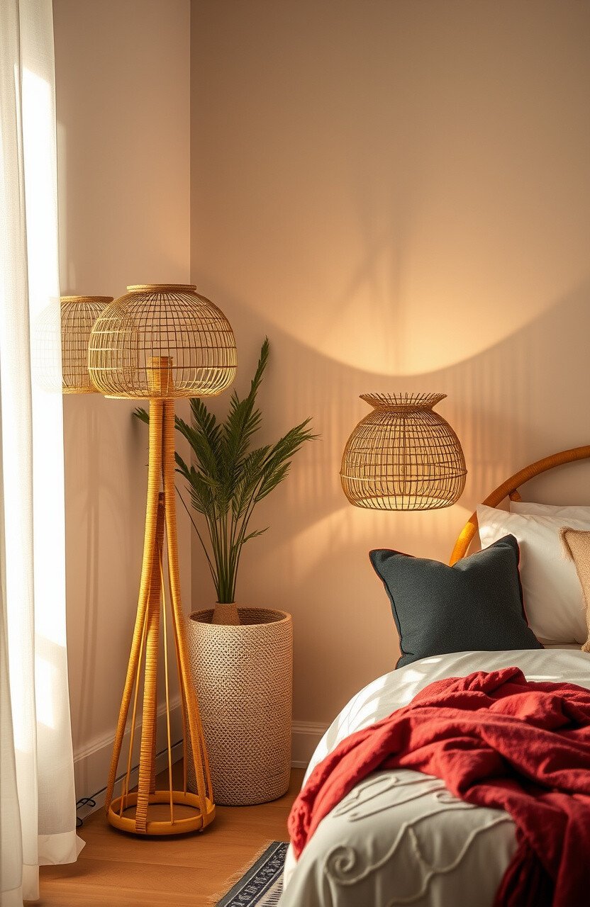 Rattan floor lamps are a must-have for any boho-themed bedroom. Their earthy, natural look brings the outdoors in.