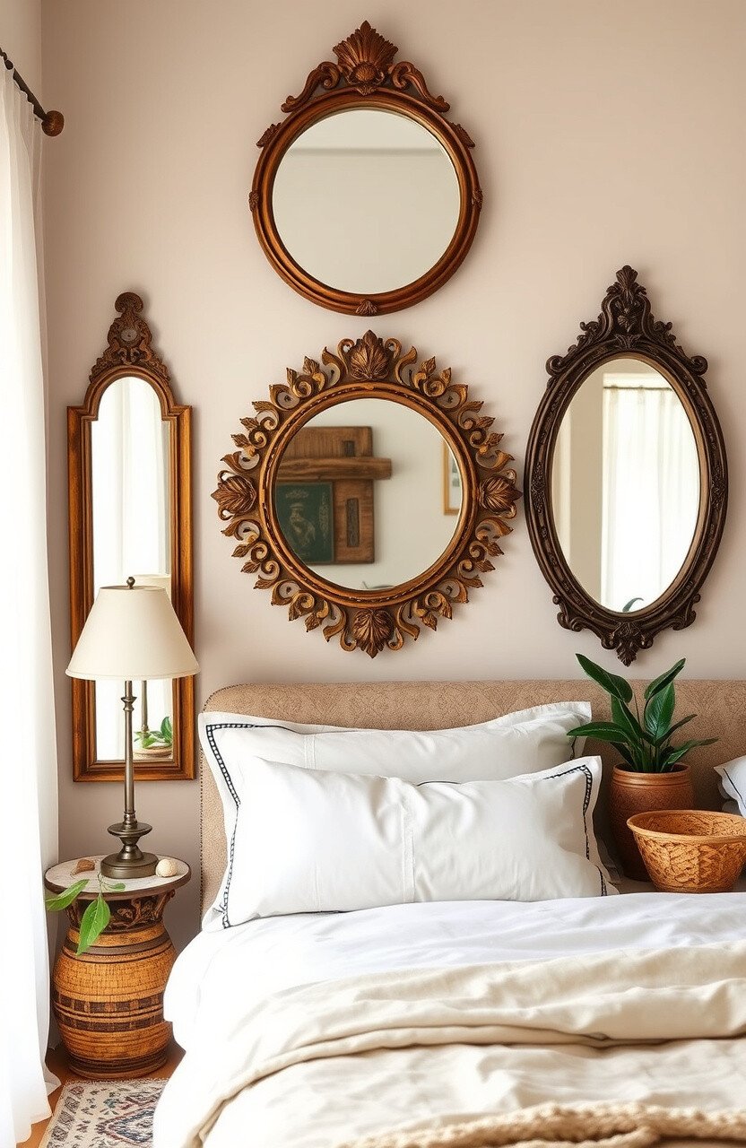 Mirrors open up a space and add light. Choose ones with ornate or rustic frames for a boho touch.