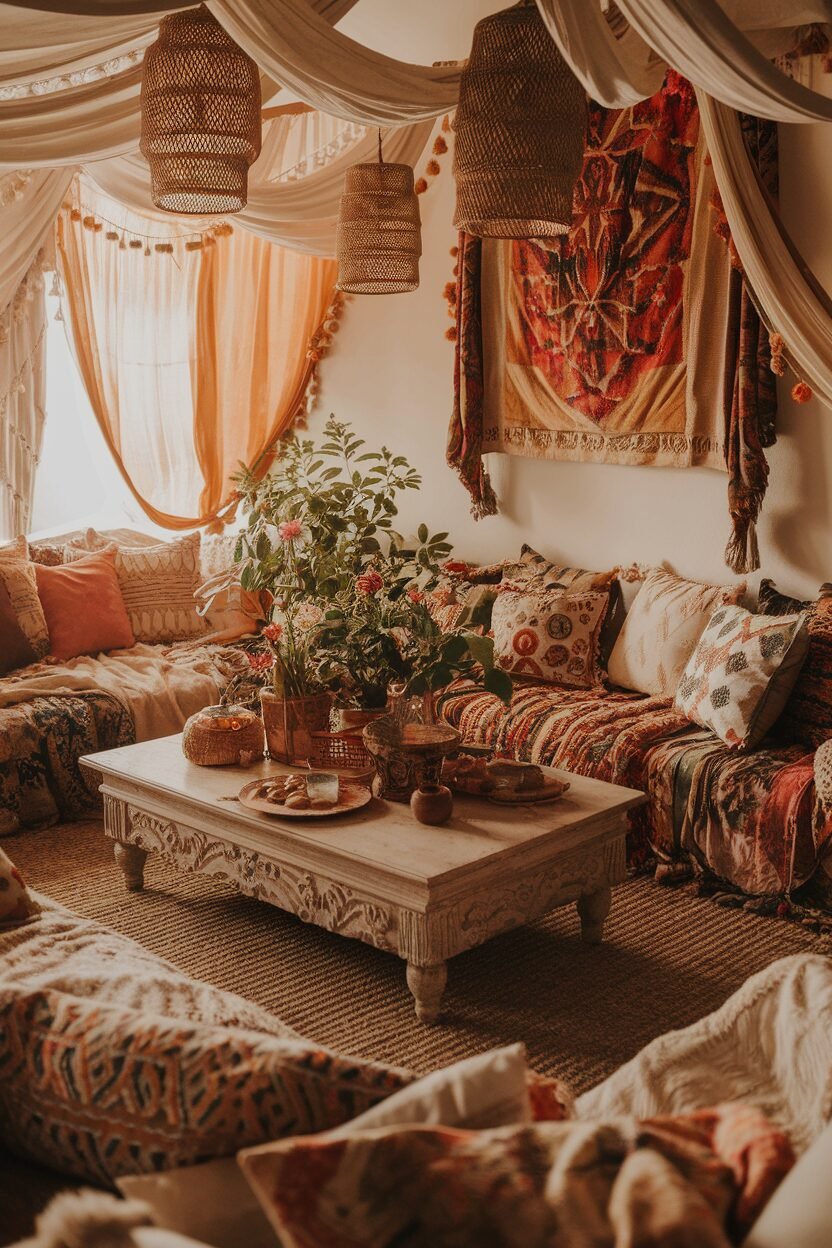 Bohemian curtains can add a touch of whimsy to your living room. Look for lightweight fabrics in vibrant colors or intricate patterns that filter sunlight beautifully.