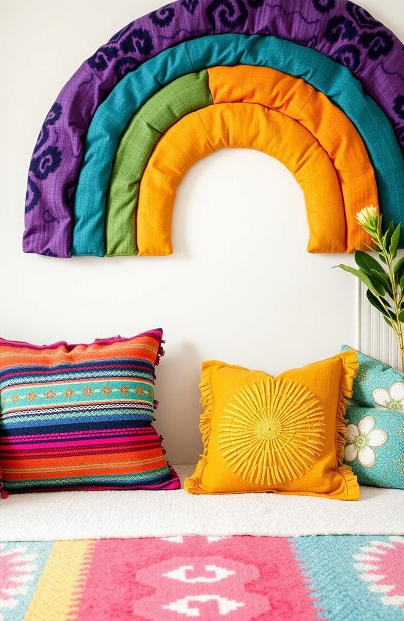 Rugs bring warmth and coziness, making any space feel inviting. A boho rainbow rug not only adds a splash of color but also defines areas for activities or reading spots. It’s like having a soft, colorful cloud underfoot.