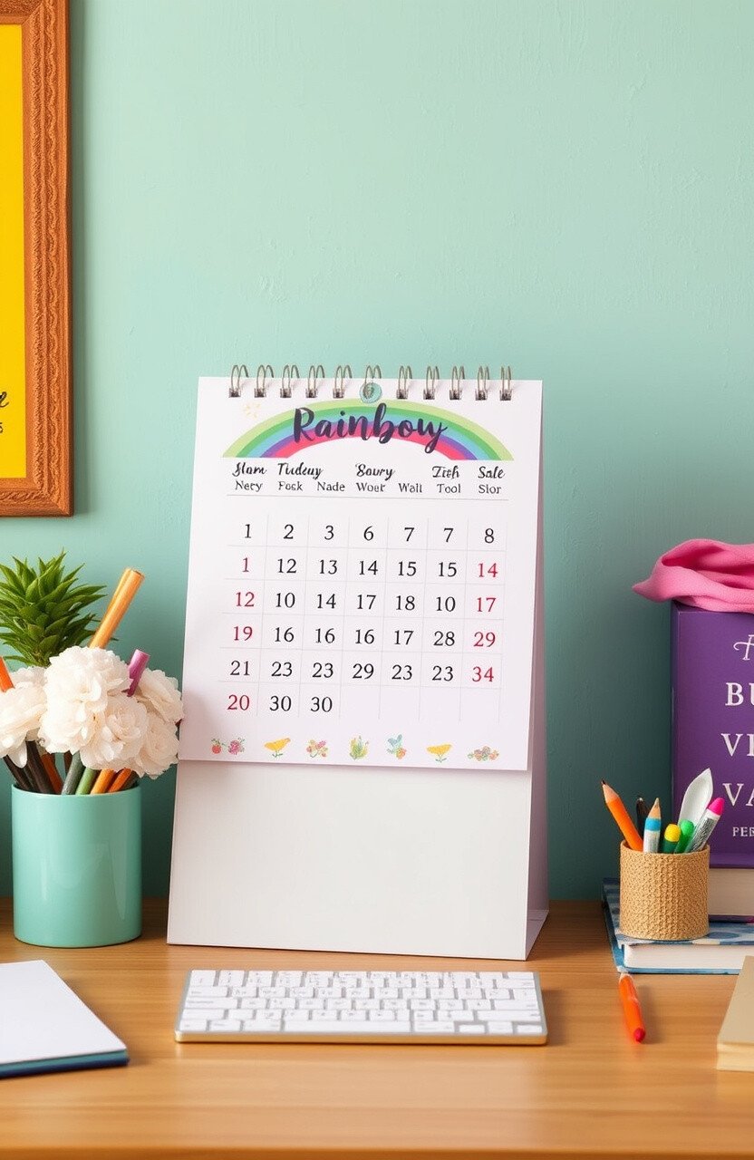 Stay organized with a Bohemian calendar that brightens your desk. Featuring rainbow colors and whimsical designs, it’s both practical and pretty.
