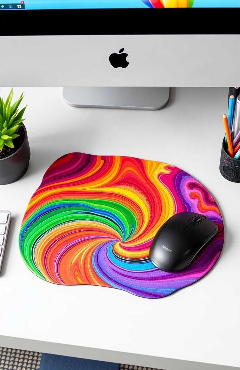 A colorful mouse pad can be the cherry on top of your Boho Rainbow desk theme. Imagine swirling colors under your fingertips as you work!