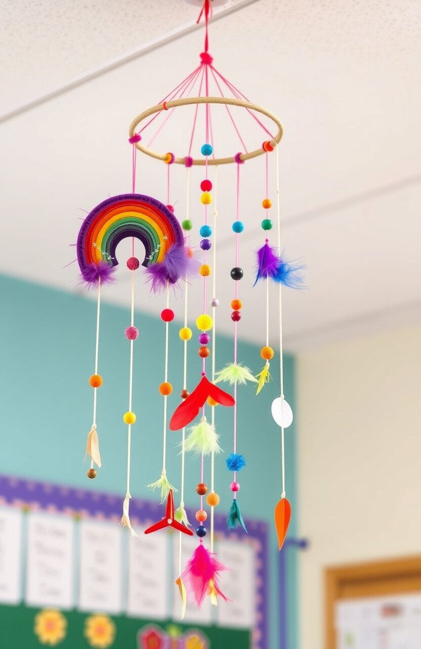 Hanging mobiles with rainbow elements can add movement and interest to the classroom ceiling. These mobiles often feature colorful beads, feathers, or paper cutouts, creating a whimsical display. The gentle swaying is soothing and can help focus attention.